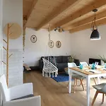Vila Domki Trzy - 3 zahrnuje rovnou střechu k opalování a zahradu.